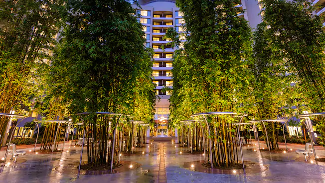 After a fun-filled day at Magic Kingdom, walking back to your room is a breeze and only takes a few minutes. Enjoy views of the courtyard, pool, Bay Lake, and Magic Kingdom from the Sky Way Bridge, which connects Bay Lake Tower with Disney's Contemporary Resort. The bridge links you to shops, restaurants, and the monorail station inside the Contemporary.